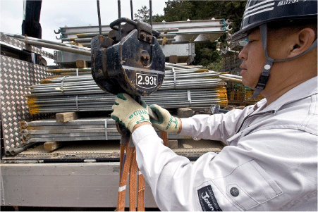 小型移動式クレーンを操る「吊師」。